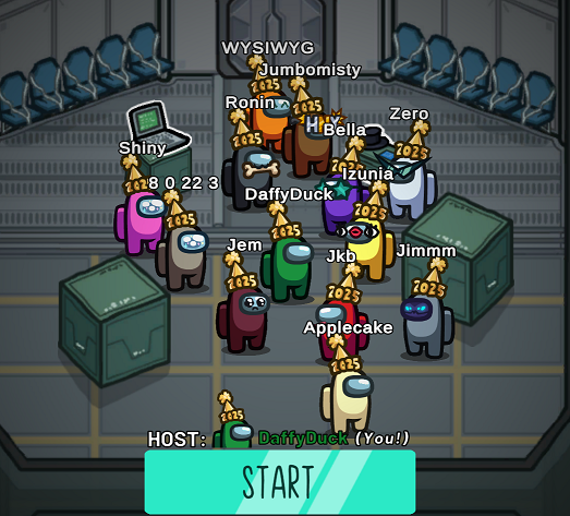 9 Jan - Bart, Daffy, Jimmers, (All 10 Player single imposter), Ronin (7 player H&S)